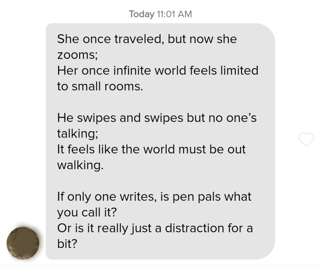 This guy has become a series contributor. He has sent about 4 different sets of prose. The interactions have largely been sweet but unremarkable. THEN I SAW HIM IN REAL LIFE.